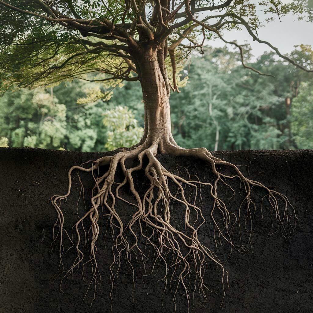 Forestil dig et træ. Dets krone strækker sig mod solen, dets blade suger lyset til sig, og dets grene bærer frugt. Set fra oven er træet smukt, stærkt og fyldt med liv. Men under jorden, usynligt for de fleste, findes en verden af rødder. Lange, kraftige rødder, der har skubbet sig igennem jord, sten og fugt for at finde næring og stabilitet.
